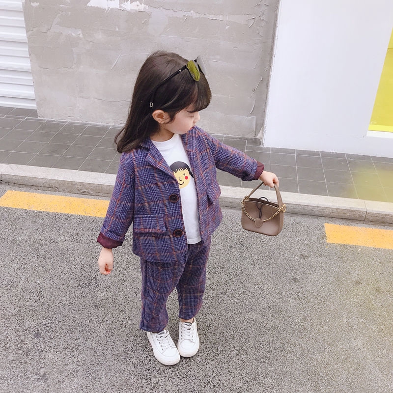 Girls Fall Suit 2 6 Years Old Baby Girl Children Fashion Stylish Western Style Plaid Small Suit Two Piece Suit Tide Shopee Malaysia