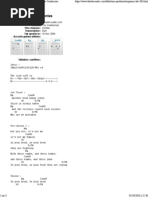 Zombie Sheet Music The Cranberries Guitar Chords Lyrics
