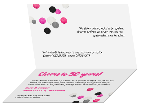 Samen 100 uitnodiging met roze confetti